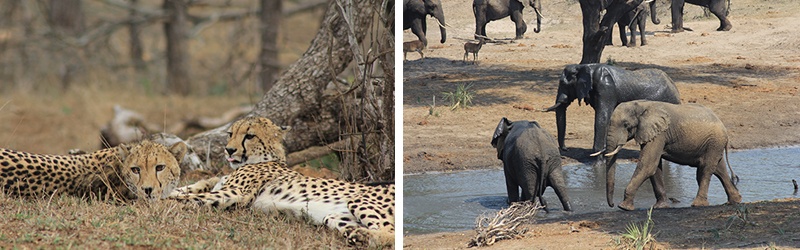 In Tembe schliefen wir in kleinen Hüttchen, auch hier wieder mit zwei Betten drin. In diesem Reservat sahen wir viele Löwen und Elefanten, ganz zu unserem Begeistern. Wie in den anderen Reservaten, suchten wir nach den Wildhunden und fanden diese einige Male. Wir konnten sogar beobachten, wie sie eine Nyala in den Zaun gejagt haben. Wir konnten ein Wasserloch von einem Aussichtshaus aus beobachten, wo wir (nebst zahlreichen Antilopen und Vögel) Elefanten und sogar auch Löwen beobachten konnten.